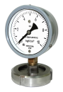 Манометры показывающие виброустойчивые с мембранным разделительным устройством типа МТП-100/1-ВУМ предназначены для измерения избыточного давления в трубопроводах сепараторов пищевых продуктов. Манометр типа МТП-100/1-ВУM состоит из манометра и мембранного разделительного устройства. Внутренняя полость трубчатой пружины манометра и надмембранное пространство разделительного устройства заполнены жидкостью полиэтилсилоксановой марки ПЭС-2 ГОСТ 13004-77.