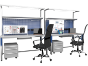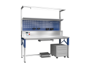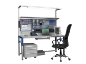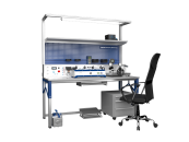 Рабочее место состоит из стола с каркасом из алюминиевого профиля с возможностью регулирования высоты антистатической столешницы, покрытой специальным материалом устойчивым к механическим и химическим воздействиям. В комплектацию рабочего места также может входить подвесная или подкатная тумба с выдвижными ящиками, полки для приборов и оборудования, светильник для освещения поверхности стола и т.д. На стол устанавливается приборная полка для приборов и функциональных панелей.
