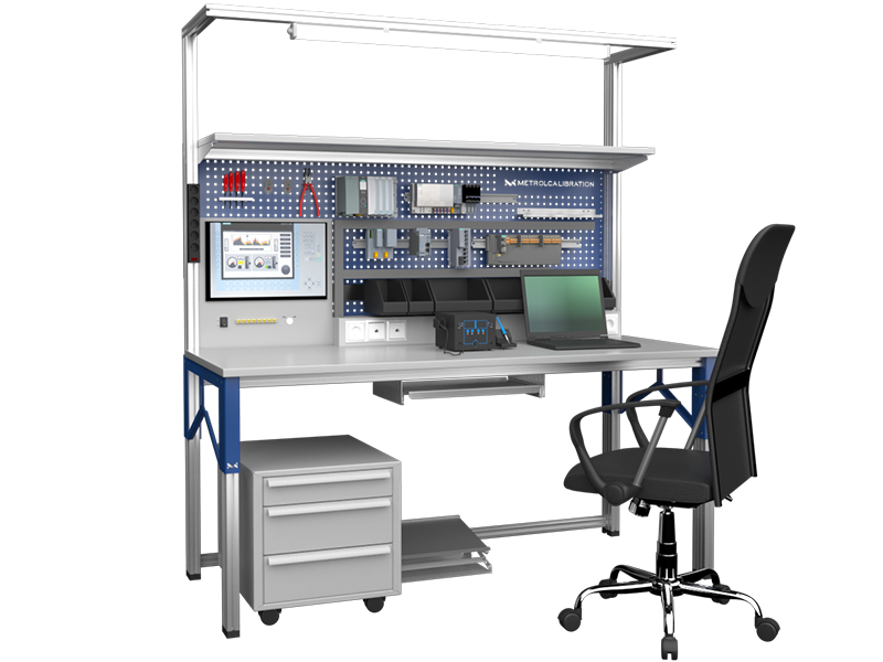 Рабочее место МЕТРОЛ производится в различных конфигурациях и размерах, и может быть оснащено электро-подъёмником столешницы. Каркас рабочего стола выполнен из алюминиевого профиля, с возможностью регулирования высоты столешницы и высоты полки. Столешница и полка выполнены в антистатическом исполнении ESD (антистатическое графитонаполненное ЛДСП, согласно требованиям стандарта ГОСТ IEC 61340-5-1-2019). В комплект поставки антистатического стола входит ESD набор для заземления столешницы — болт и провод с клеммой.